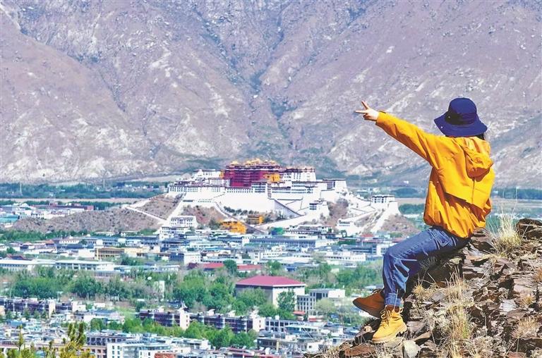 不知从何时起,拉萨以布达拉宫为背景的“旱地拔葱”旅拍模式悄然兴起。连日来,很多网友和游客专门来到拉萨打卡“旱地拔葱”旅拍,画面中蓝天白云、雪山河流、城市村庄仿佛瞬间“起飞”。