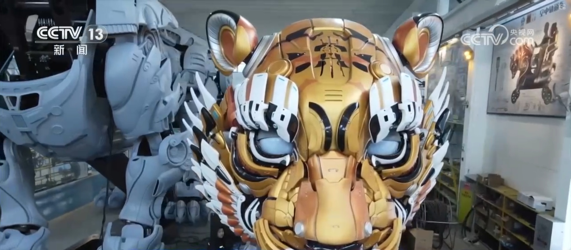 不只是中华巨马,在洛阳、山东等多地的新中式乐园里,能互动的“巨型怪兽”艺术装置越来越多,这些巨型装置基本上来自国内的企业。走进辽宁省大连市的这个生产车间,重达36吨、静立时高达7米的巨型机甲老虎正在进行最后的收尾阶段。它不仅体积庞大,更搭载了先进的人工智能大脑与高度仿生的表情模块,具备多语言交流能力,并能通过AI实现有内容、有语气、有性格的深度互动。