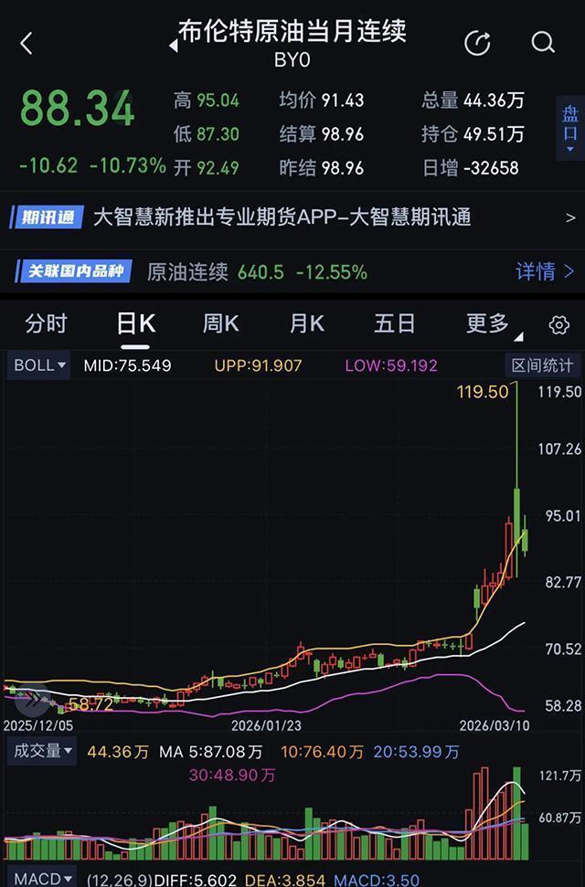 川普释放停战信号,布伦特原油从120美元高位骤跌至88美元,单日波动幅度达40%。