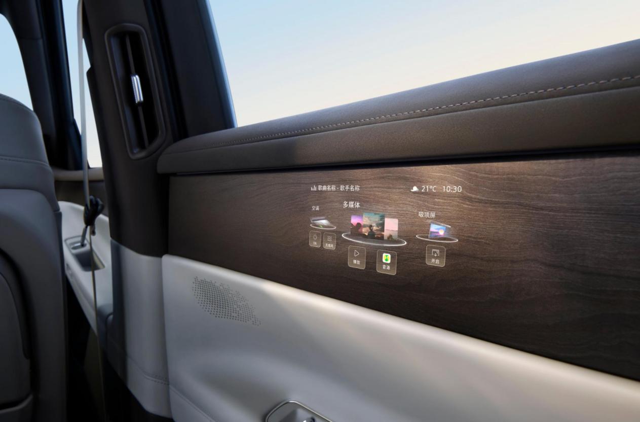 智能化是ID.ERA 9X补齐短板的重点。其全球首发了与Momenta联合开发的R7强化学习世界模型智驾系统,迈出了“物理AI”真正上车的第一步。座舱内则以“九屏交互”为核心,除了前排15.6英寸双联屏和后排21.4英寸吸顶屏,最引人注目的是门板上的Smart Surface魔术屏。这块屏幕在息屏时与木纹饰板融为一体,点亮后才显现出控制界面,兼顾了科技感与内饰的整体美感。此外,行业首发的动态零重力座椅、婉风空调、双向智能冷暖冰箱等配置,也将其豪华舒适体验拉满。