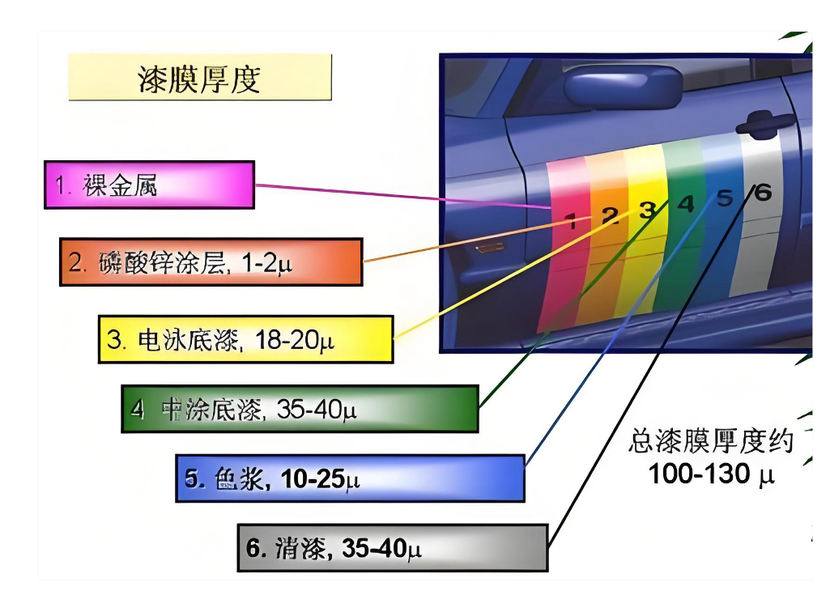 (下图可作为汽车漆面结构参考)